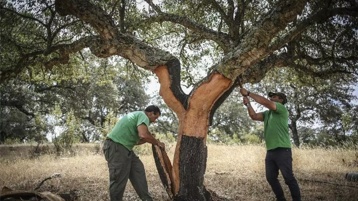 Trabajadores sacan corcho en una imagen de archivo. / CÓRDOBA