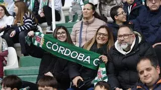 Unas aficionadas blanquiverdes, durante la sesión de entrenamiento a puerta abierta del Córdoba CF. / VÍCTOR CASTRO