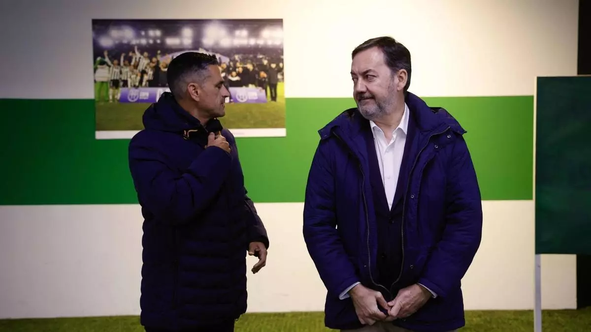 Mikel Goti, último refuerzo invernal del Córdoba CF hasta la fecha, junto a Monterrubio. / Manuel Murillo