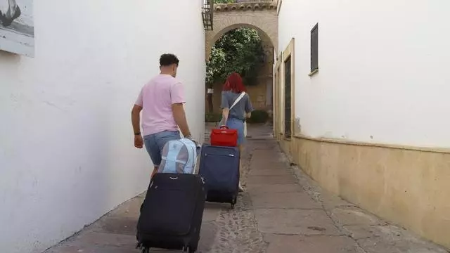 Dos clientes, con sus maletas, en el casco histórico de Córdoba. / A.J. GONZÁLEZ