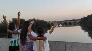 Tres menores tuteladas contemplan el río Guadalquivir desde el Puente Romano. / CÓRDOBA