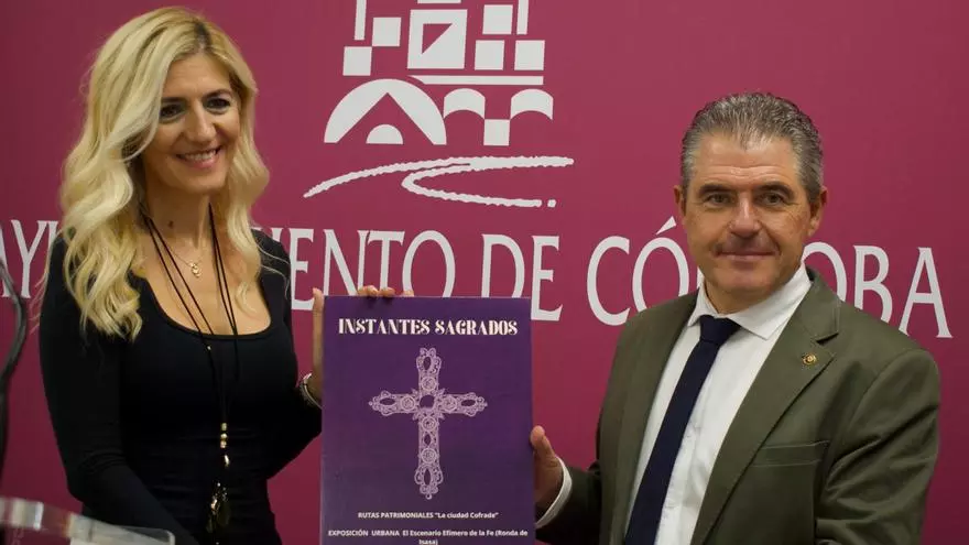 La delegada de Centro Histórico del Ayuntamiento de Córdoba, Lourdes Morales, junto al Presidente de la Agrupación de Hermandades y Cofradías, Manuel Murillo / Paula Ruiz