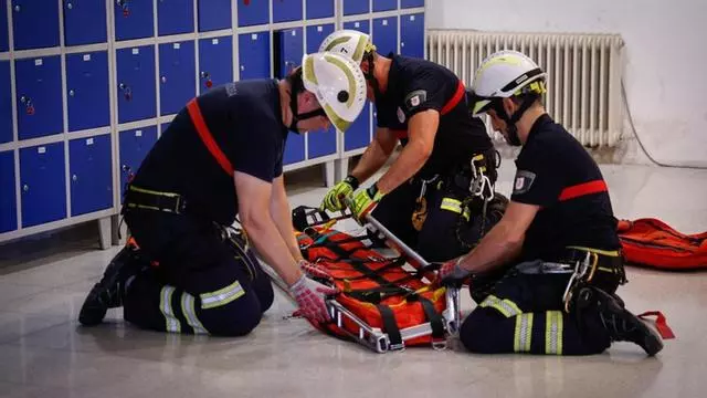 Los bomberos preparan la camilla empleada para este tipo de rescates. / Manuel Murillo