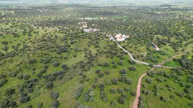 Vista aérea del parque San Martín de Añora, con el camino que marca la división entre las cuencas del Guadiana y el Guadalquivir. / CÓRDOBA