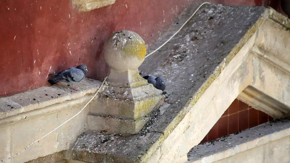 Palomas sobre una cornisa del edificio de La Tercia, en la Plaza de la Rosa de Montilla. / José Antonio Aguilar