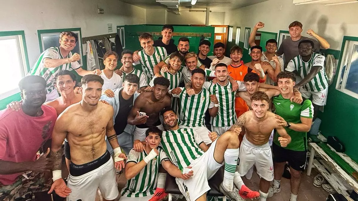 La plantilla del Córdoba CF B celebra su valioso triunfo ante el Chiclana. / ccf b