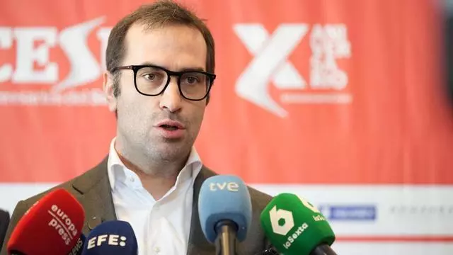 El ministro de Economía, Comercio y Empresa, Carlos Cuerpo, atiende a los medios tras el acto inaugural del foro ‘Avanzando hacia la incertidumbre’. A 20 de noviembre de 2025, en Carmona, Sevilla (Andalucía, España). / María José López - Europa Press