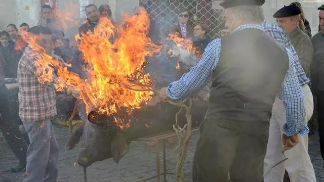 Un cochino y una cochina ibéricos de bellota de unas 15 arrobas cada uno --más de 170 kilos por cabeza--, sacrificados previamente en el campo, fueron despiezados ayer cara al público en el octavo Día de la Matanza de Alcaracejos, que ha retomado el Ayuntamiento tras el parón del año pasado. Una decena de hombres participaron en las labores de despiece, que se iniciaron con la quema del pelo del animal mediante las aulagas, unos arbustos que crecen en la zona. Santiago Puerto iba narrando al público cómo el cerdo es dividido en dos partes y a partir de ahí la extracción del lomo, el solomillo, la presa, el secreto o el tocino que asado en la candela, ya convertido en torrezno, era dado a degustar a las muchas personas que acudieron de distintos lugares de la provincia.