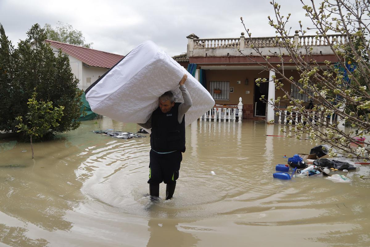 Los vecinos sacan las cosas más valiosas de sus viviendas a causa de la crecida del río